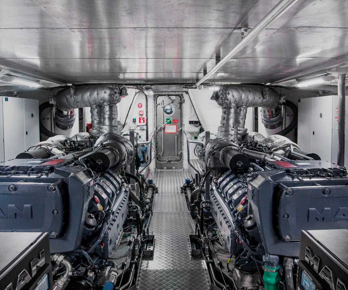 Med vores standard- eller specialtilpassede løsninger til dit maskinrum sikrer vi høj driftsikkerhed og lang levetid. Kontakt os, og vi finder den helt rette marine motorløsning, der passer præcist til dit skib og dine behov.